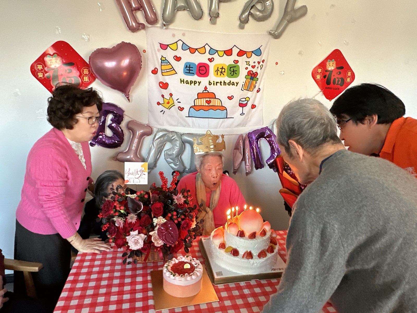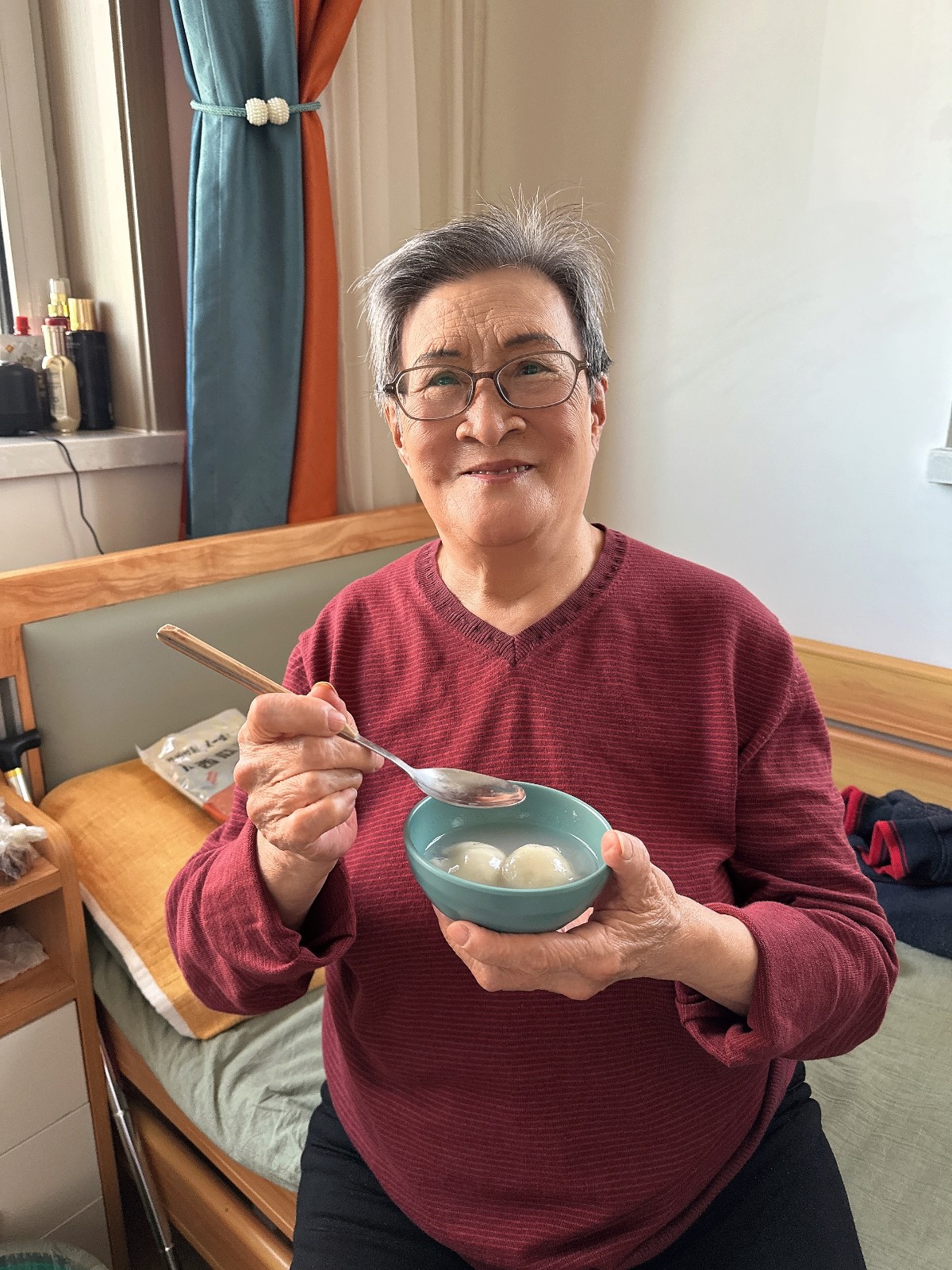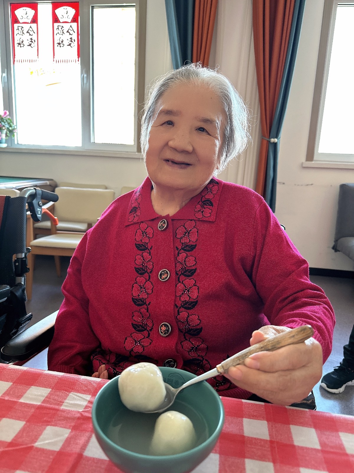 当生日蜡烛遇见元宵花灯,,,,,陶煦养老照护中心用双重惊喜点燃节庆气氛。。。。。。王奶奶是陶煦养老第一位入住的尊长,,,,,正值88岁生日的寿星戴上金冠,,,,,在《生日歌》与《卖汤圆》的欢喜旋律中,,,,,品着软糯香甜的汤圆,,,,,笑纹里盛满幸福的色泽。。。。。。