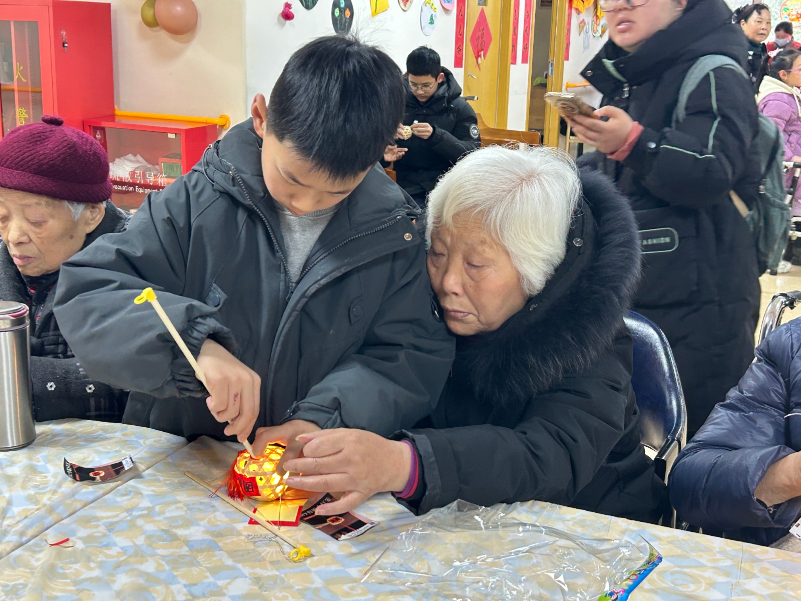 在拾智养老的院内,,,,,自愿者少年们的到来给爷爷奶奶们带来了欢喜和生命力,,,,,灵巧的双手与尊长的苍劲掌纹交织,,,,,一盏盏彩纸灯笼渐次绽放,,,,,代际融会的暖流中,,,,,古板手艺与人世温情悄然传承。。。。。。