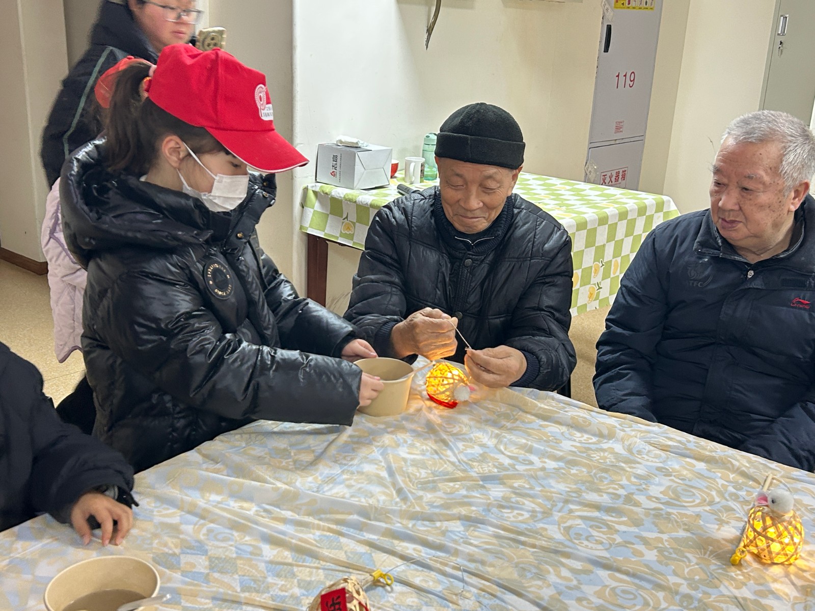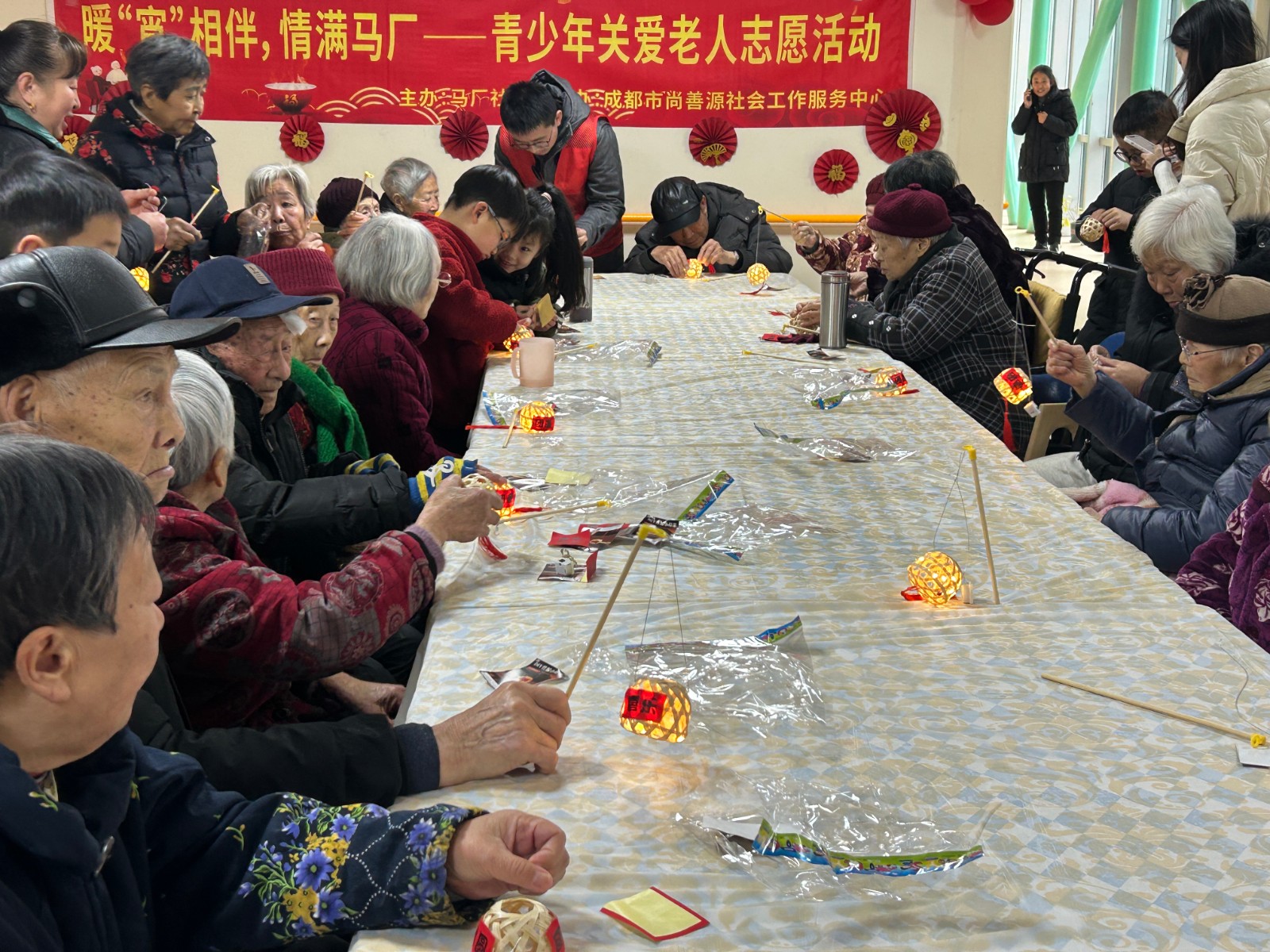在拾智养老的院内,,,,,自愿者少年们的到来给爷爷奶奶们带来了欢喜和生命力,,,,,灵巧的双手与尊长的苍劲掌纹交织,,,,,一盏盏彩纸灯笼渐次绽放,,,,,代际融会的暖流中,,,,,古板手艺与人世温情悄然传承。。。。。。